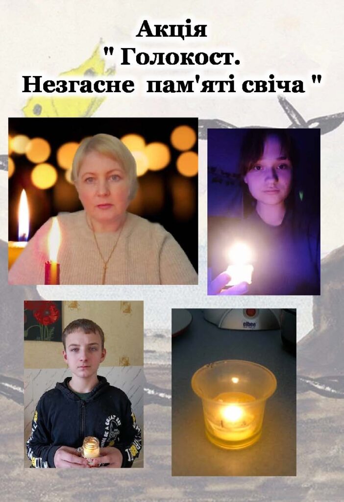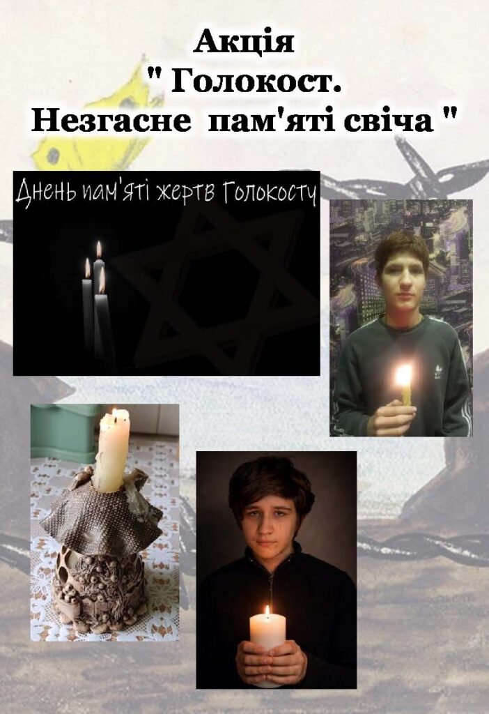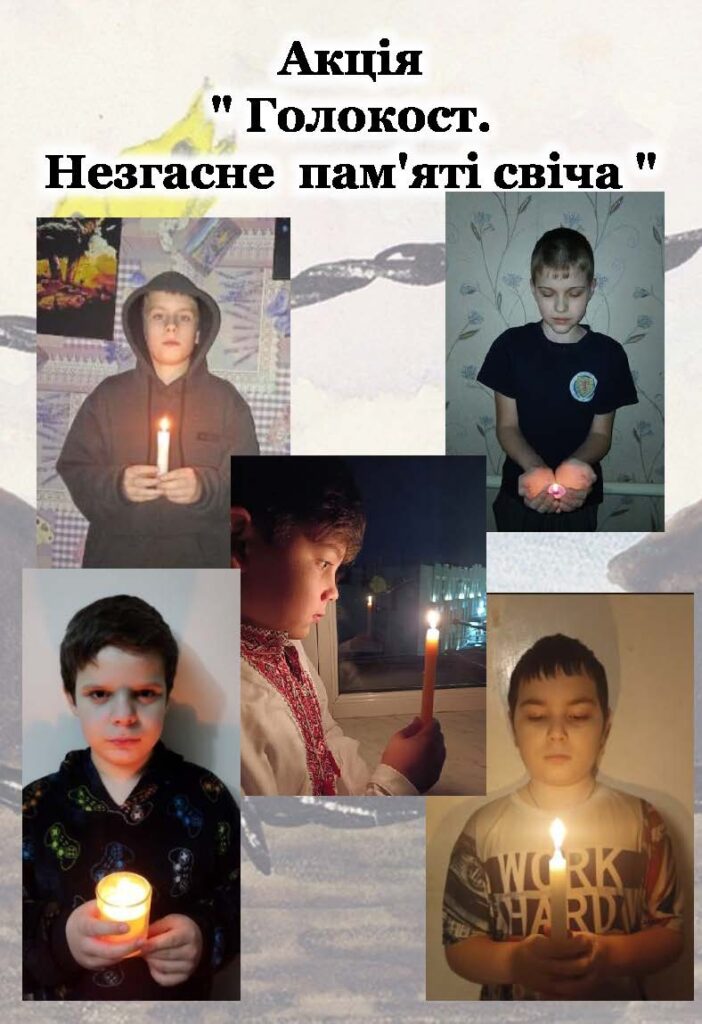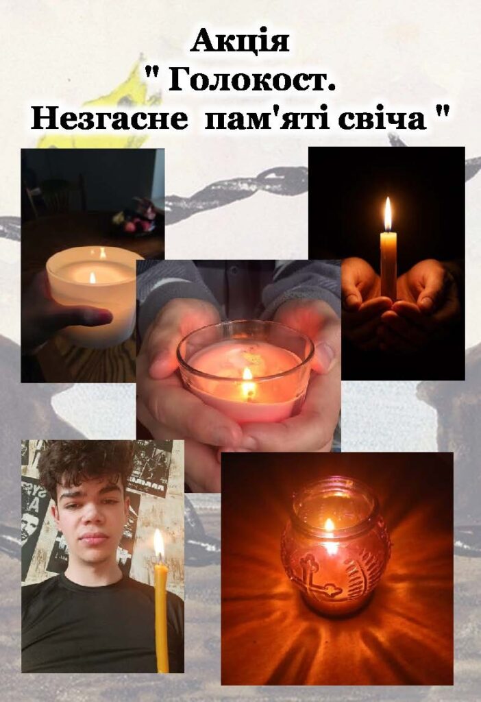 Акція «Голокост. Не згасне пам’яті свіча», присвячена мільйонам безвинних людей, які стали жертвами нацистського геноциду під час Другої світової війни, є традиційною в нашому закладі освіти. Вона має на меті зберегти історичну пам’ять про трагедію Голокосту та нагадати про страшні наслідки ненависті, дискримінації й байдужості.