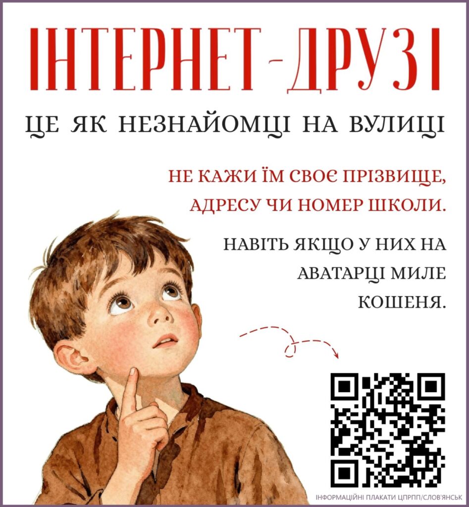 Інтернет-знайомства можуть створювати ілюзію безпеки та близькості. Проте за милим котиком на аватаці може ховатися будь-хто. 🐱 Не розголошуйте особисті дані (адресу, номер школи, прізвище) — тримайте дистанцію, як із незнайомцями на вулиці.