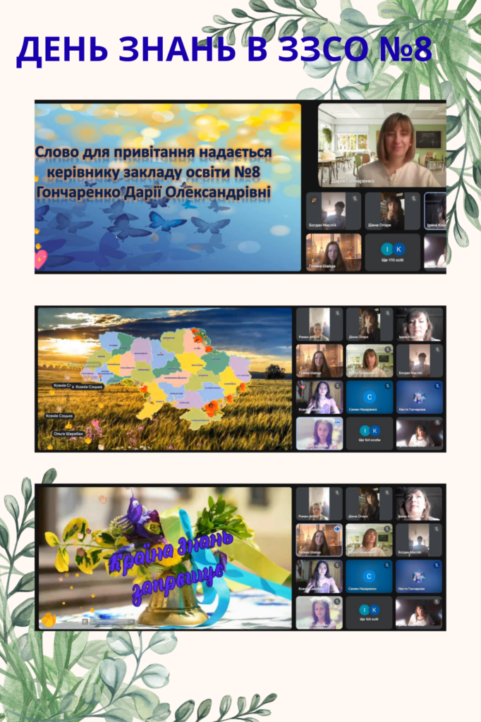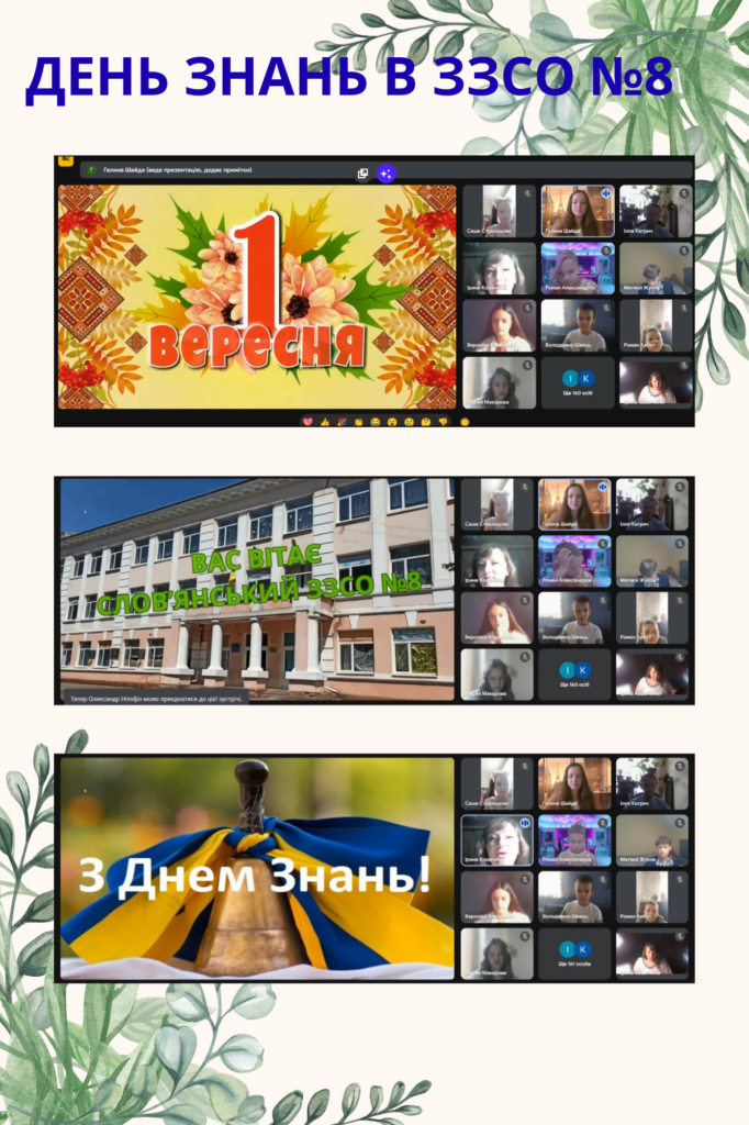 1 вересня у Слов’янському закладі загальної середньої освіти І–ІІІ ступенів №8 відбулося святкування Дня знань. Уже не вперше ми зустрічаємо цей день в онлайн-форматі. Хоча кожному з нас хотілося б живого спілкування, сучасні реалії диктують свої умови, і ми вміємо залишатися єдиною шкільною родиною навіть через екрани.