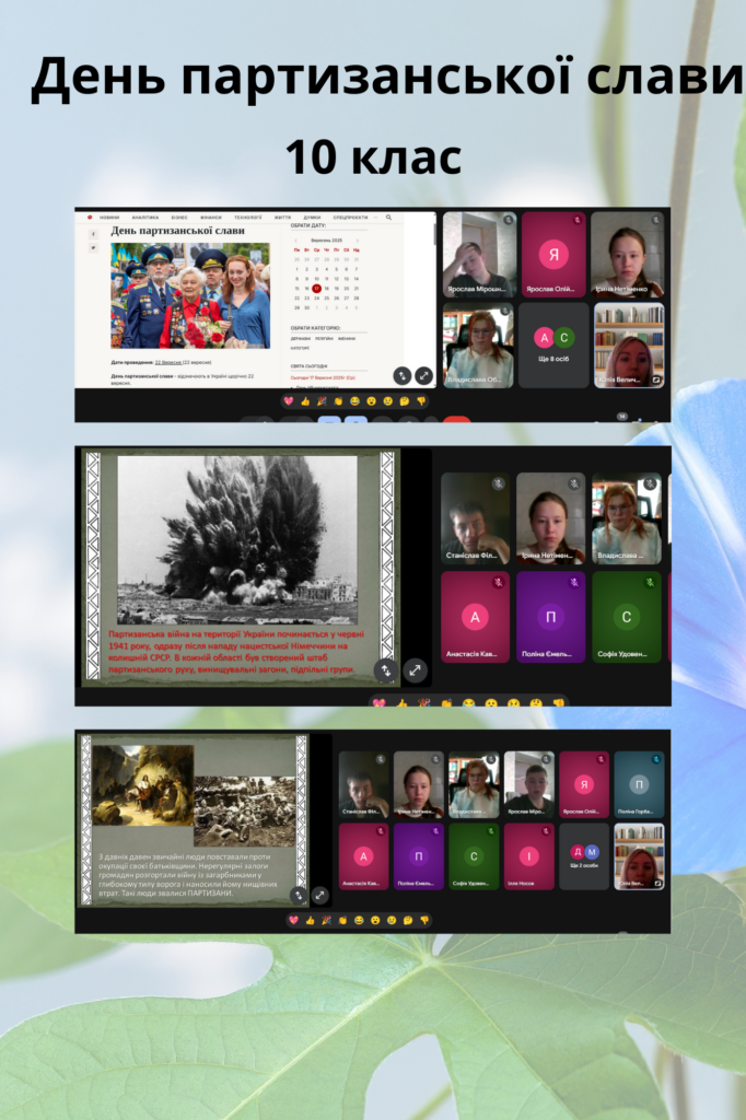 Класні керівники провели виховні години та тематичні бесіди, під час яких учні дізналися про подвиг партизанів і підпільників у роки Другої світової війни, їхню мужність, стійкість та самопожертву в боротьбі за свободу рідної землі.