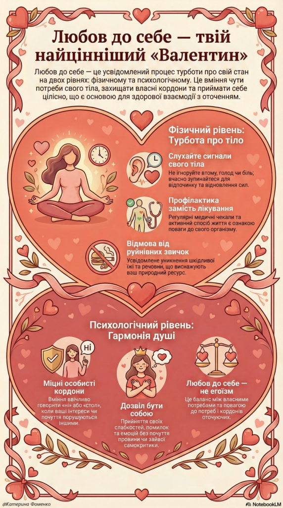 Любов до себе — це не про миттєву слабкість чи егоїзм. Це фундамент вашої стійкості та здатності любити інших. Це мова турботи, якою ви розмовляєте з собою через конкретні справи та рішення.
