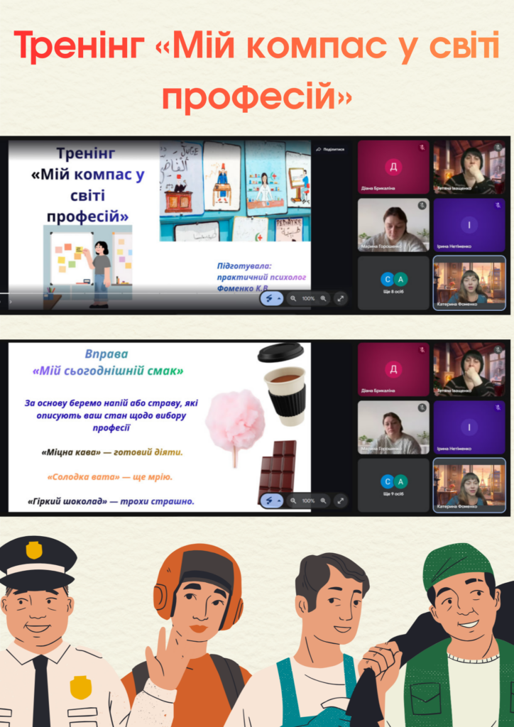 Вибір професії — це не просто рішення про те, куди подати документи після школи. Це пошук балансу між мріями, власними талантами та запитами реального світу. Саме цій важливій темі був присвячений онлайн-тренінг «Мій компас у світі професій», який провела практичний психолог Фоменко К.В. для наших старшокласників.