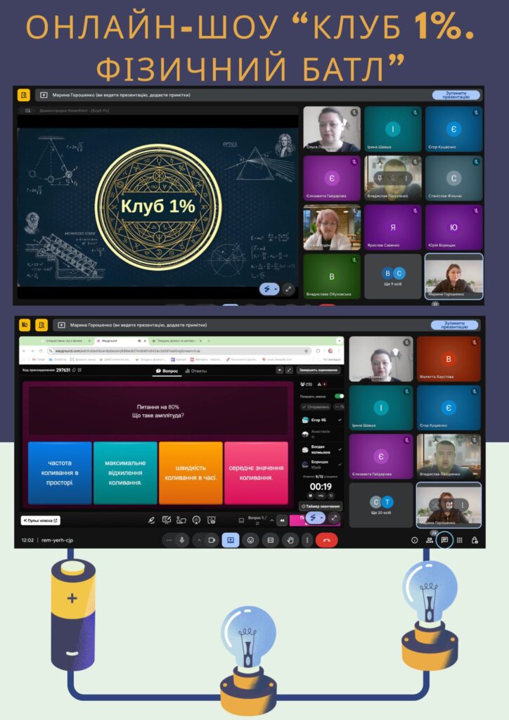 Вчителем фізики Горошенко М.О. в рамках тижня фізики та математики було проведено захопливу гру «Клуб 1%», де учні змагалися не лише за перемогу, а й за звання найкмітливіших знавців фізики.