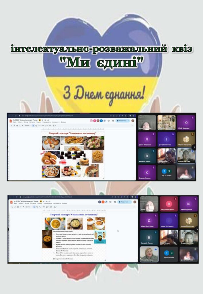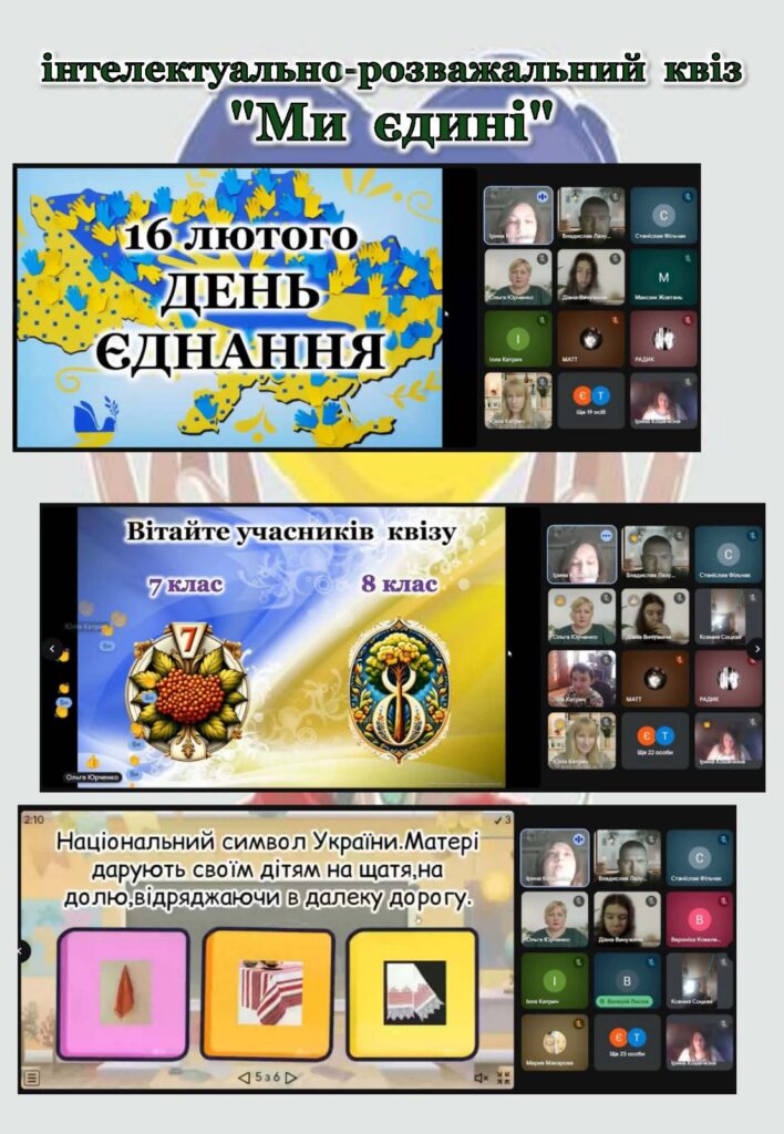До Дня єднання України для здобувачів освіти 7–8 класів було проведено інтелектуально-розважальний квіз «Ми єдині». Захід став чудовою можливістю не лише перевірити знання учнів, а й у цікавій інтерактивній формі поглибити розуміння історії, культури та традицій нашої держави.