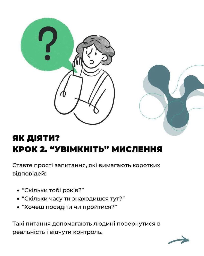 2. Забезпеч безпеку. Якщо є загроза — фізично виведи людину з небезпечного місця.