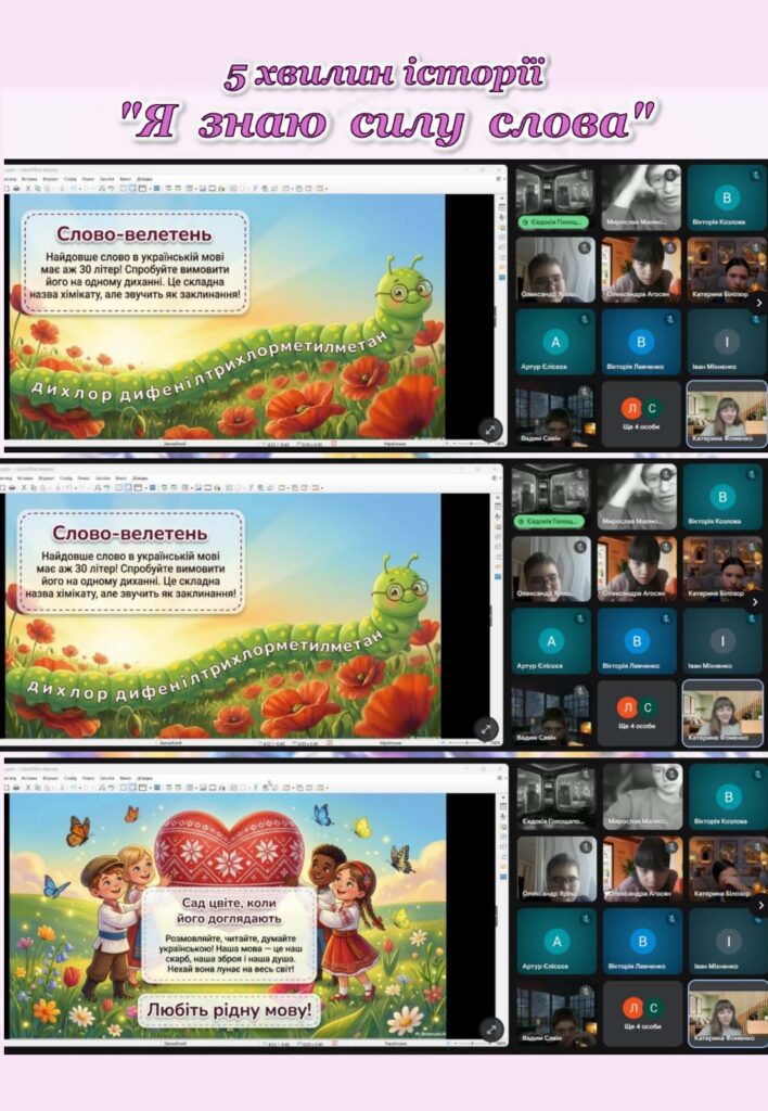 Учні досліджували силу українського слова через призму історії, літератури, мистецтва та навіть природничо-математичних наук. Такий міжпредметний підхід дозволив школярам переконатися: мова — це не лише засіб спілкування, а й універсальний інструмент пізнання світу. Заходи сприяли розвитку мовної культури учнів та вихованню поваги до рідного слова.