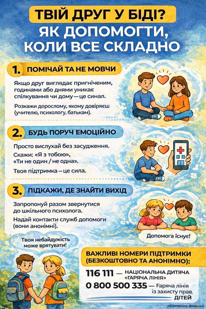 Якщо вдома стає нестерпно або небезпечно, не замикайся в собі. Знайди дорослого, якому довіряєш: